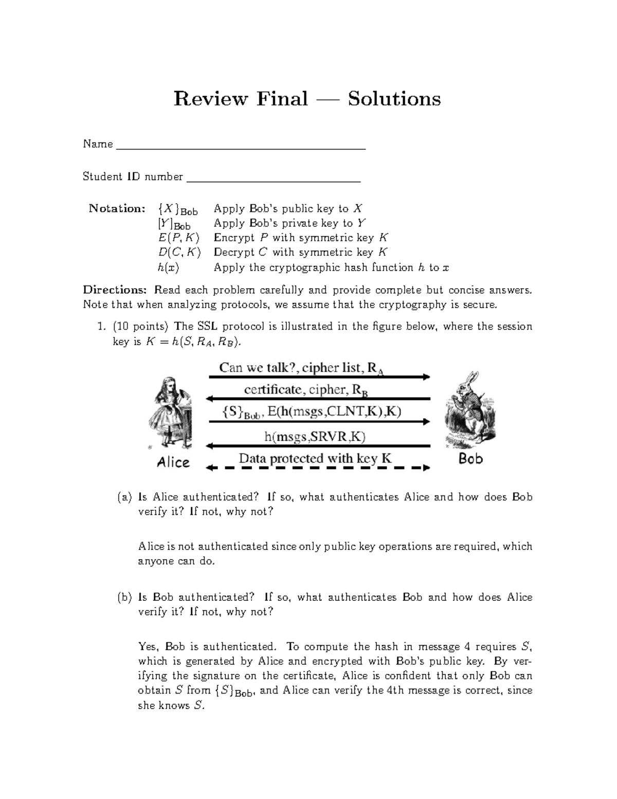 CS101 Final Review: Cryptography and Security Protocols - Studocu