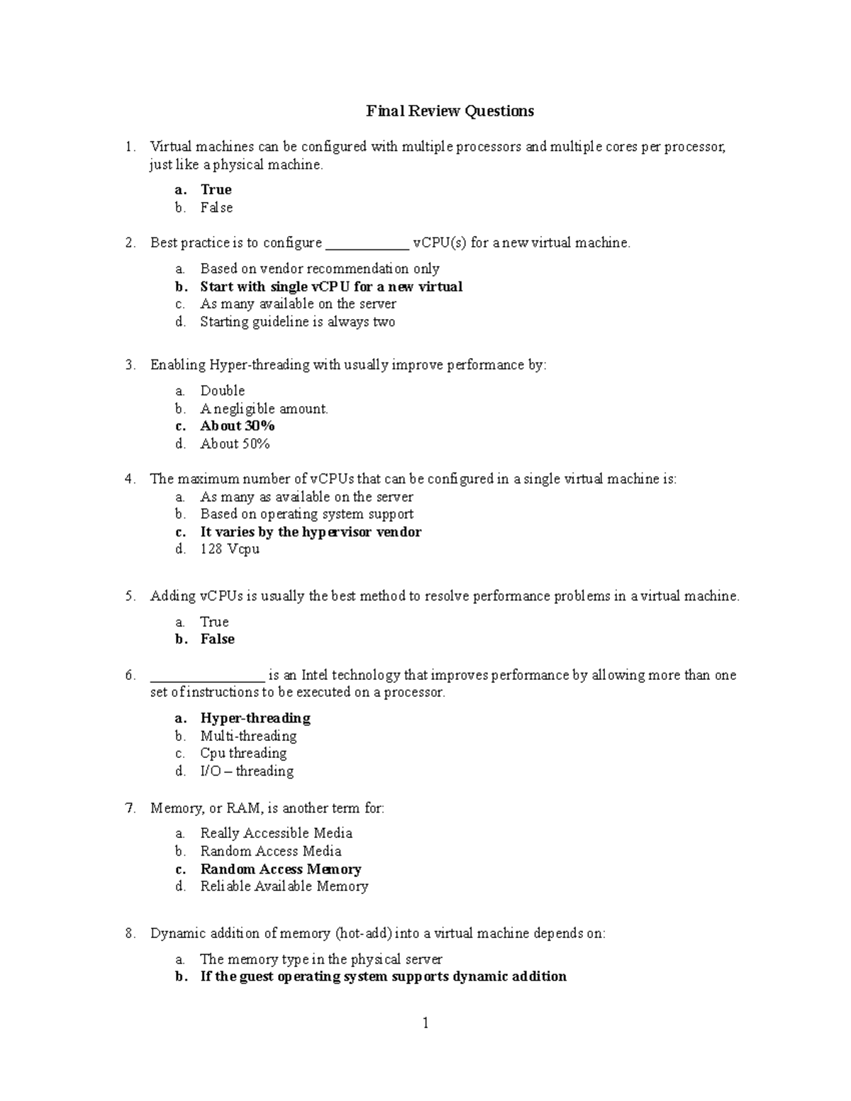 Final Exam Review Questions for Virtualization (CS101) - Studocu