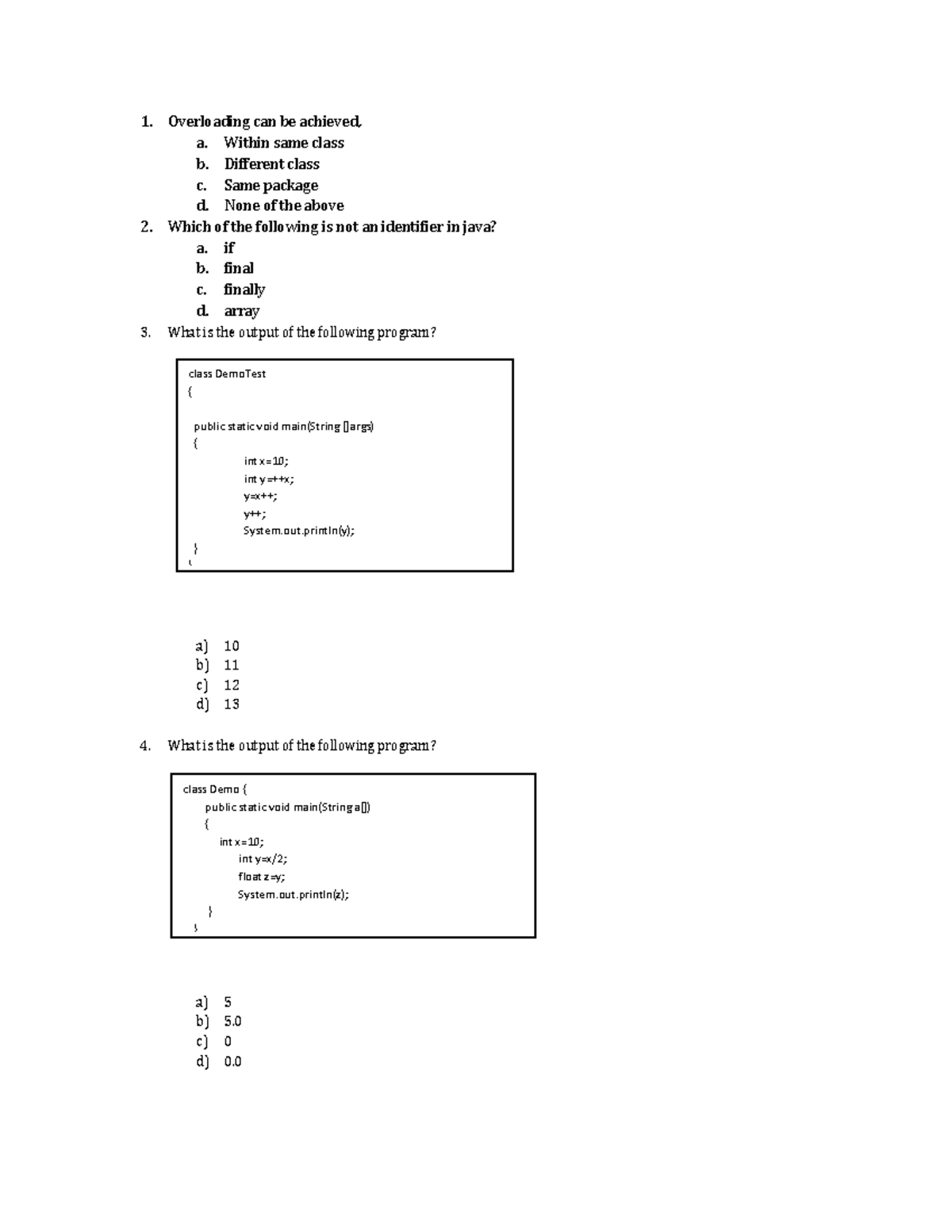 Java MCQ Exam Questions - Course Code: CS101 - Studocu