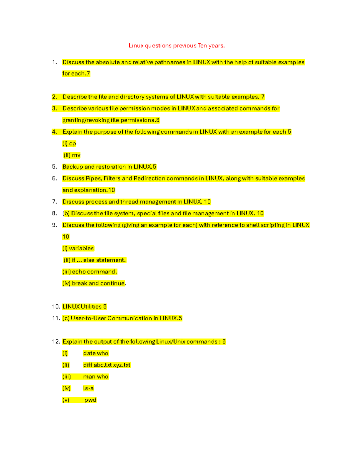 Linux Questions: Comprehensive Review of 10 Years (CS101) - Studocu