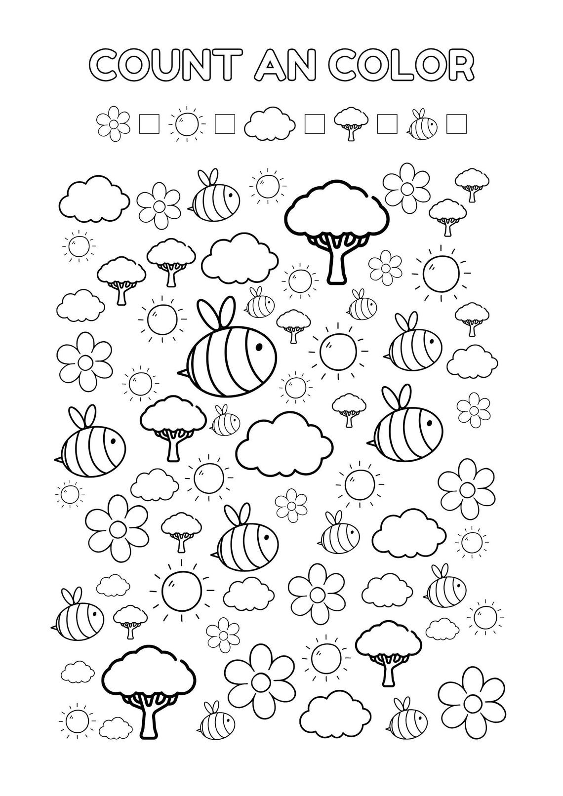 20 Printable Counting Worksheets 1-20: Count and Color (PDF Download A4 ...