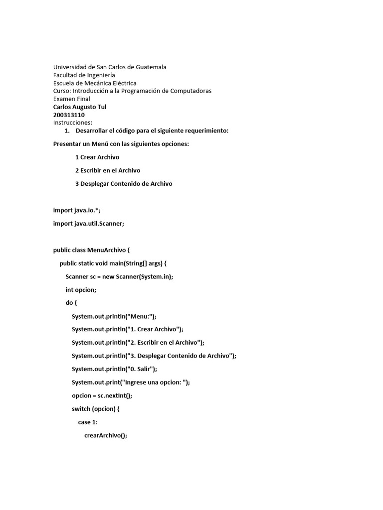 Menú de Gestión de Archivos en Java | PDF | Informática