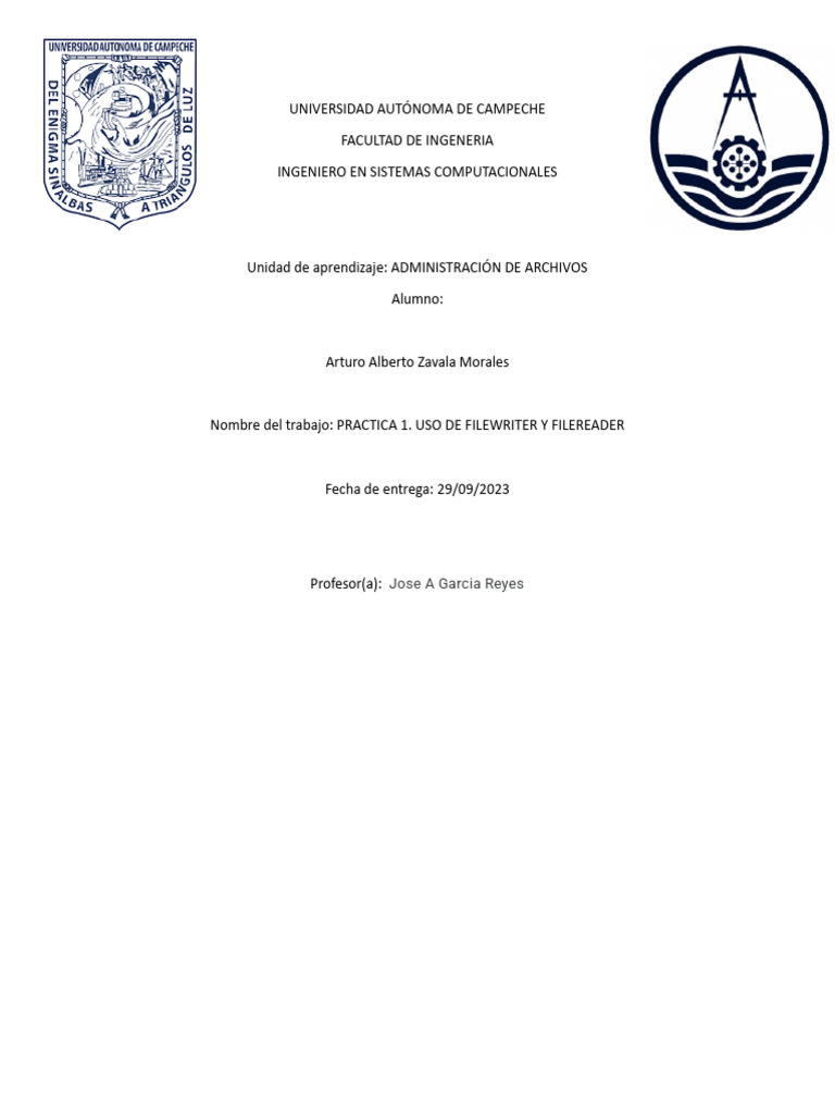 Practica 1. Uso de Filewriter y Filereader | PDF | Métodos y materiales ...