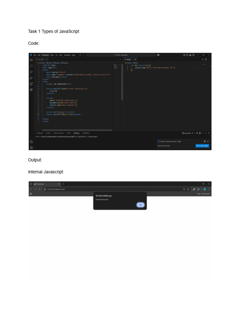 Types of JavaScript | Internal JavaScript Example | External JavaScript ...