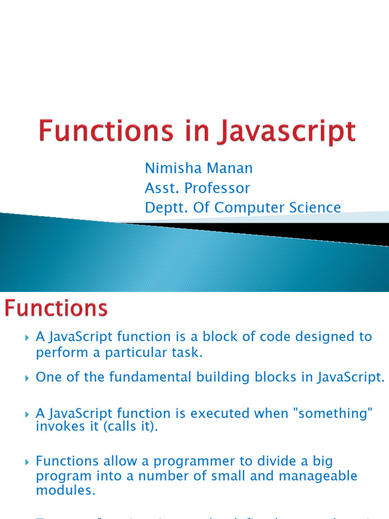 Based on this image's title: “Functions in JavaScript ? | PDF | Anonymous Function | Parameter ...”