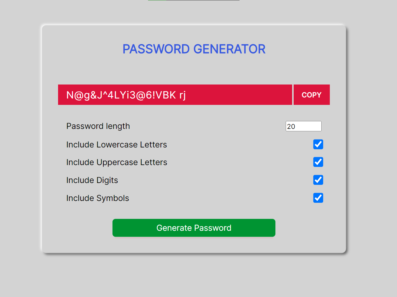 GitHub - jsp220/Password-Generator: Password Generator cloned from ...