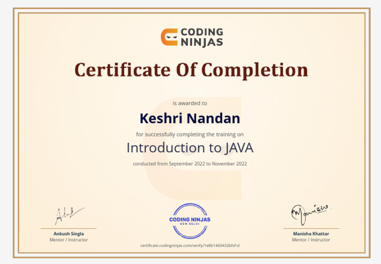 Based on this image's title: “Course - Certificate Java Programming | PDF”