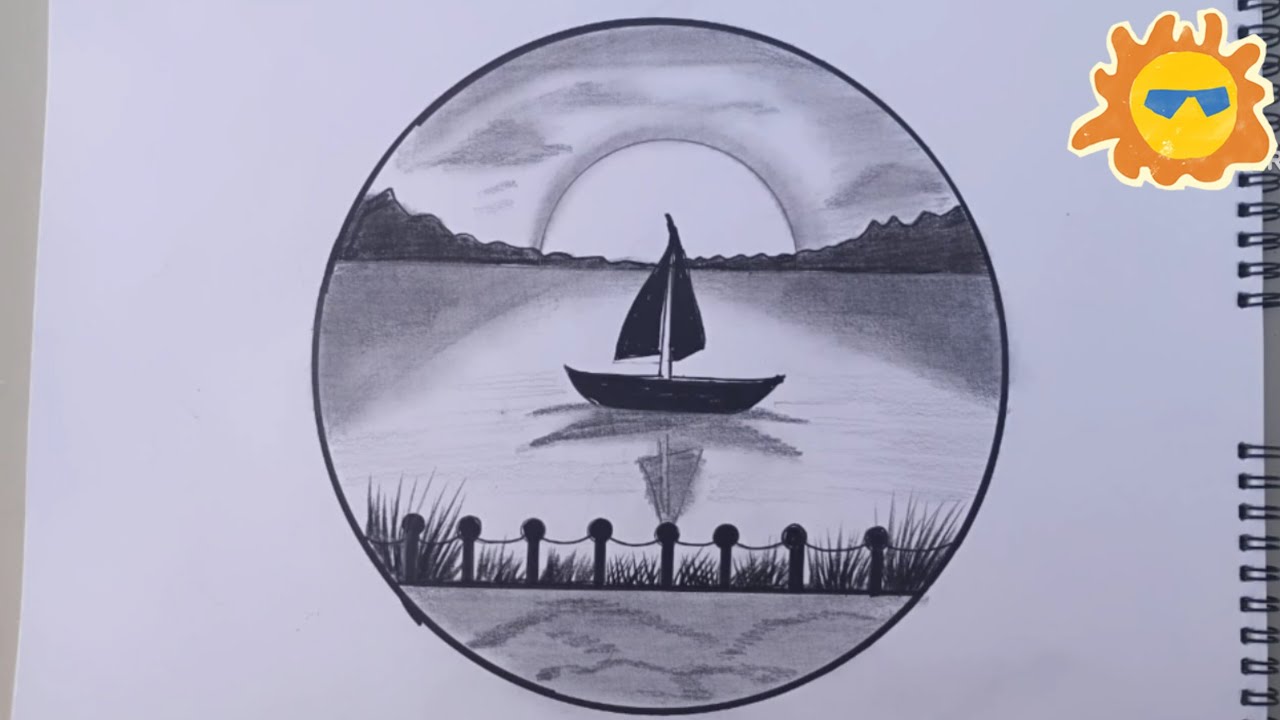 How to draw sunset scenery with pencil, Pencil Sketch for Beginners ...