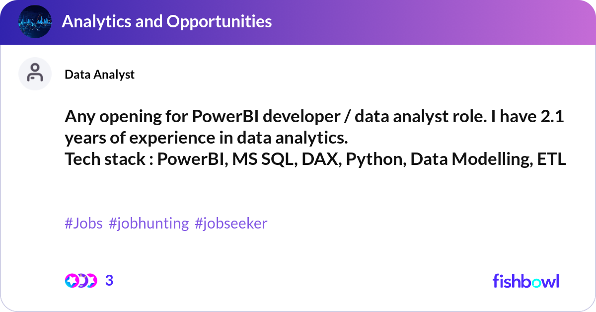 Any opening for PowerBI developer / data analyst r... | Fishbowl