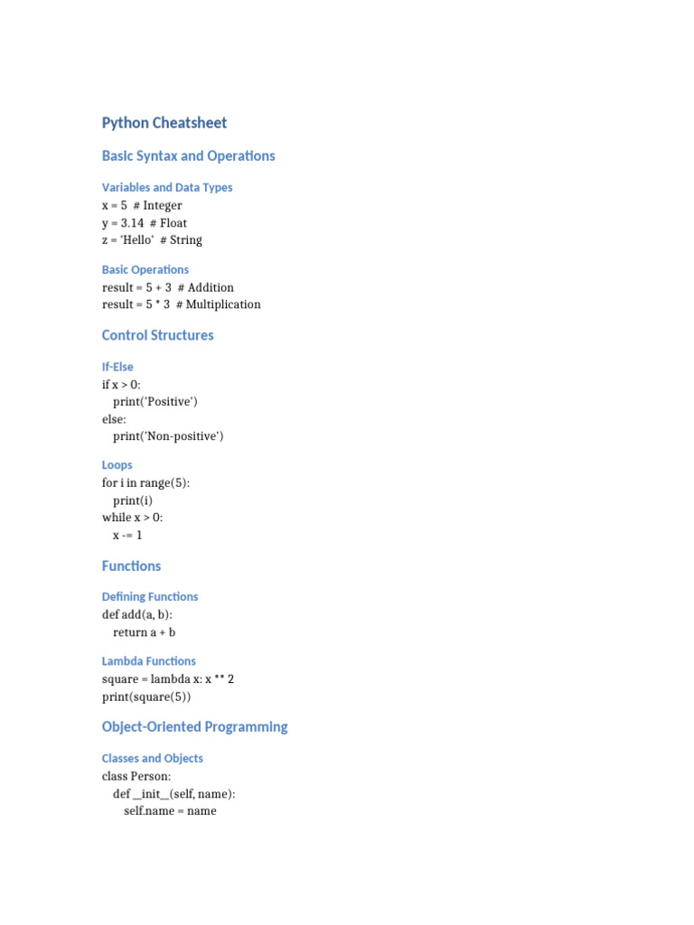 Python Cheat Sheet PDF: Your Quick Reference Guide to Python ...