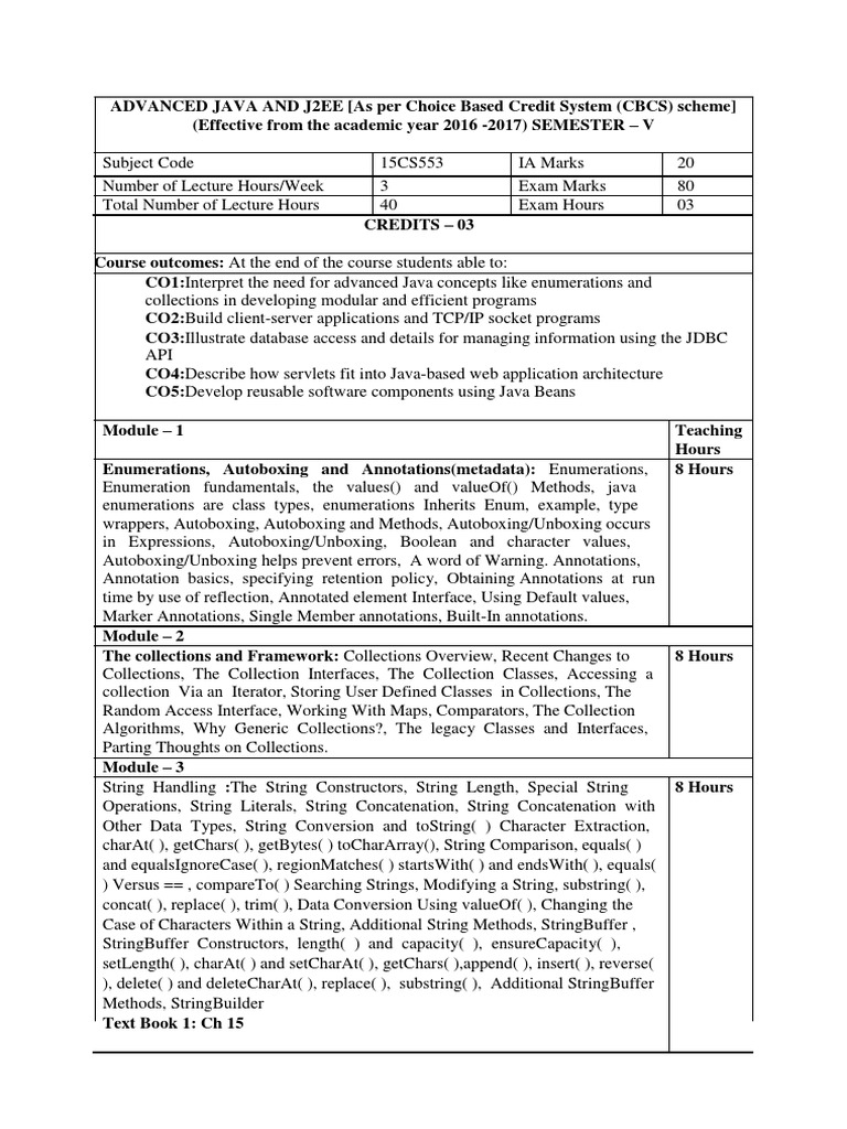 VTU Advanced Java and J2EE Syllabus | PDF | Java (Programming Language ...