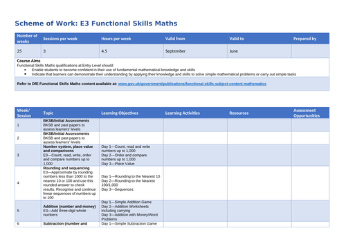 E3 Functional Skills Maths Scheme of Work | Teaching Resources