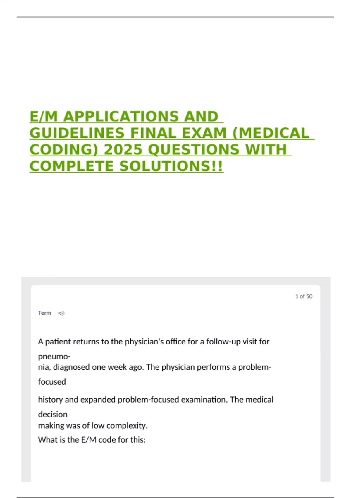 E/M APPLICATIONS AND GUIDELINES FINAL EXAM (MEDICAL CODING) 2025 ...