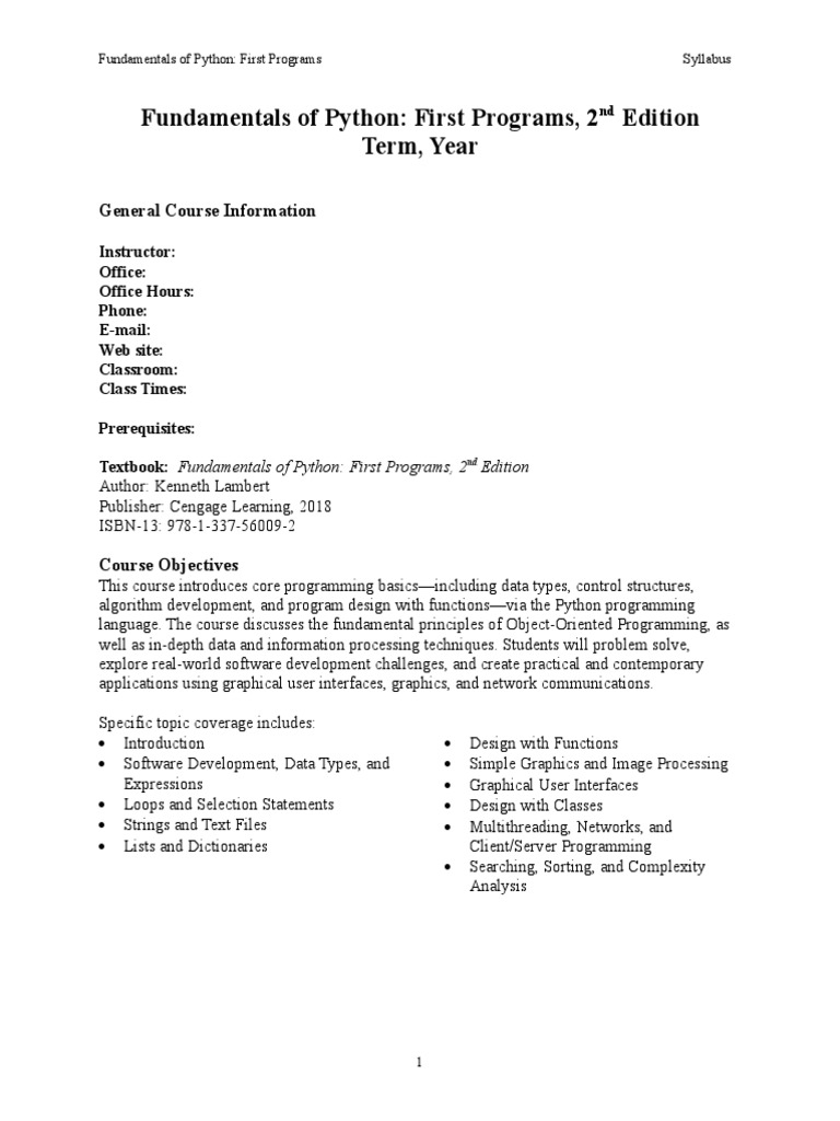 Fundamentals of Python: First Programs, 2 Edition Term, Year | PDF ...