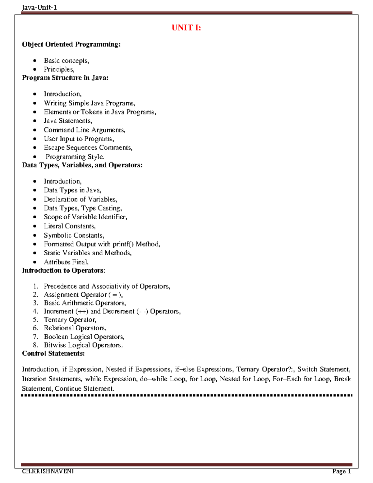 Java Unit 1.
