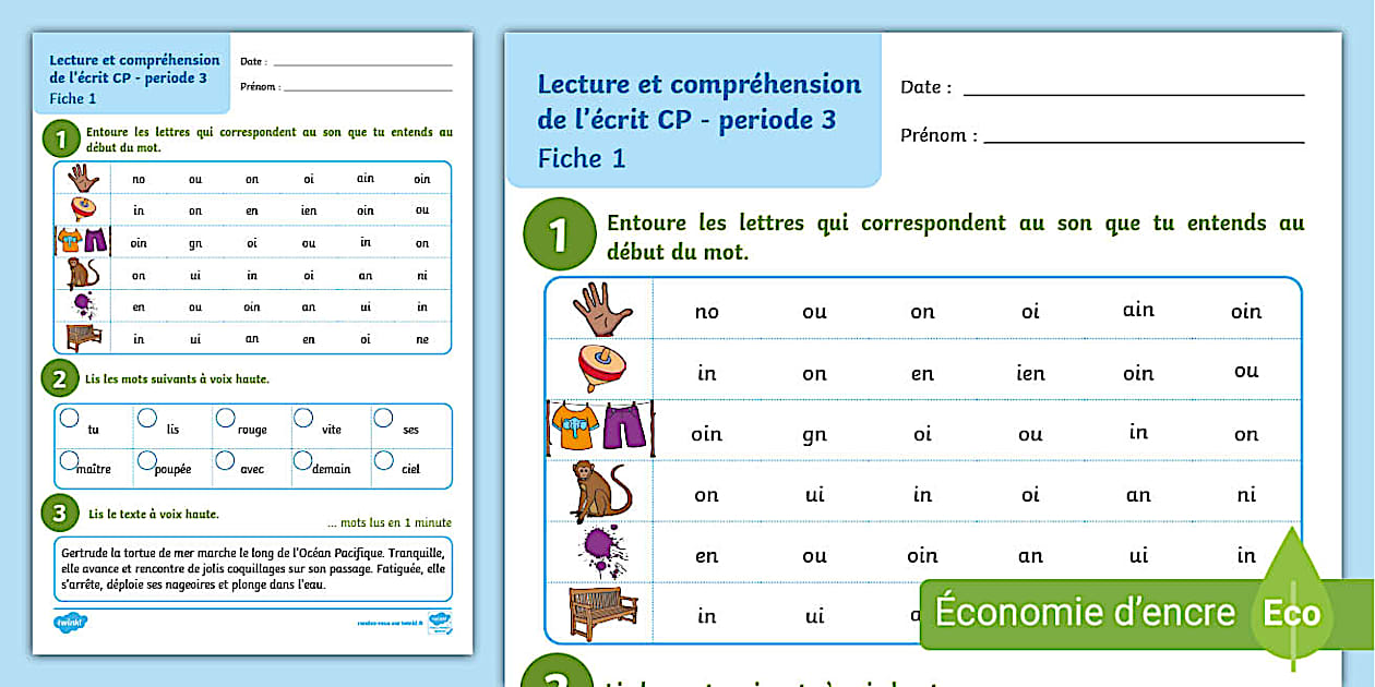Lecture et compréhension de l'écrit CP - Periode 3 - Fiche 1