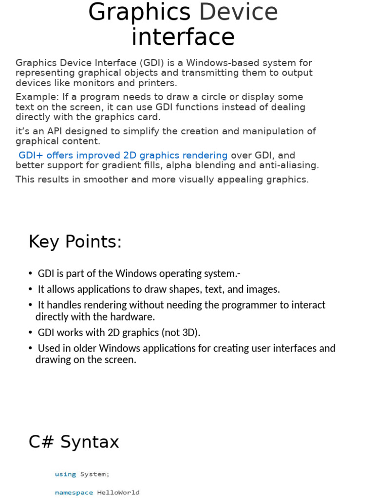 Graphic Device Interface (GDI) presentation | free to view