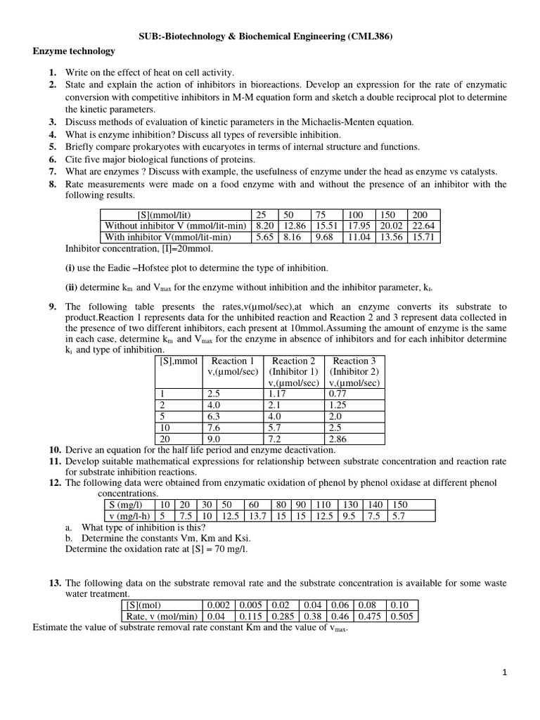below is enzyme kinetics data table 1 analyse the data and complete the ...