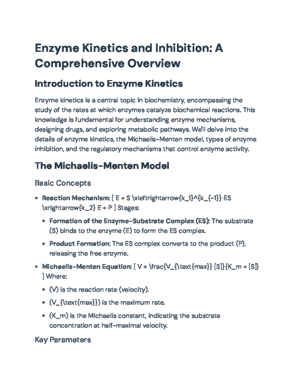 Enzyme Kinetics and Inhibition: Comprehensive Overview (BIO101 ...