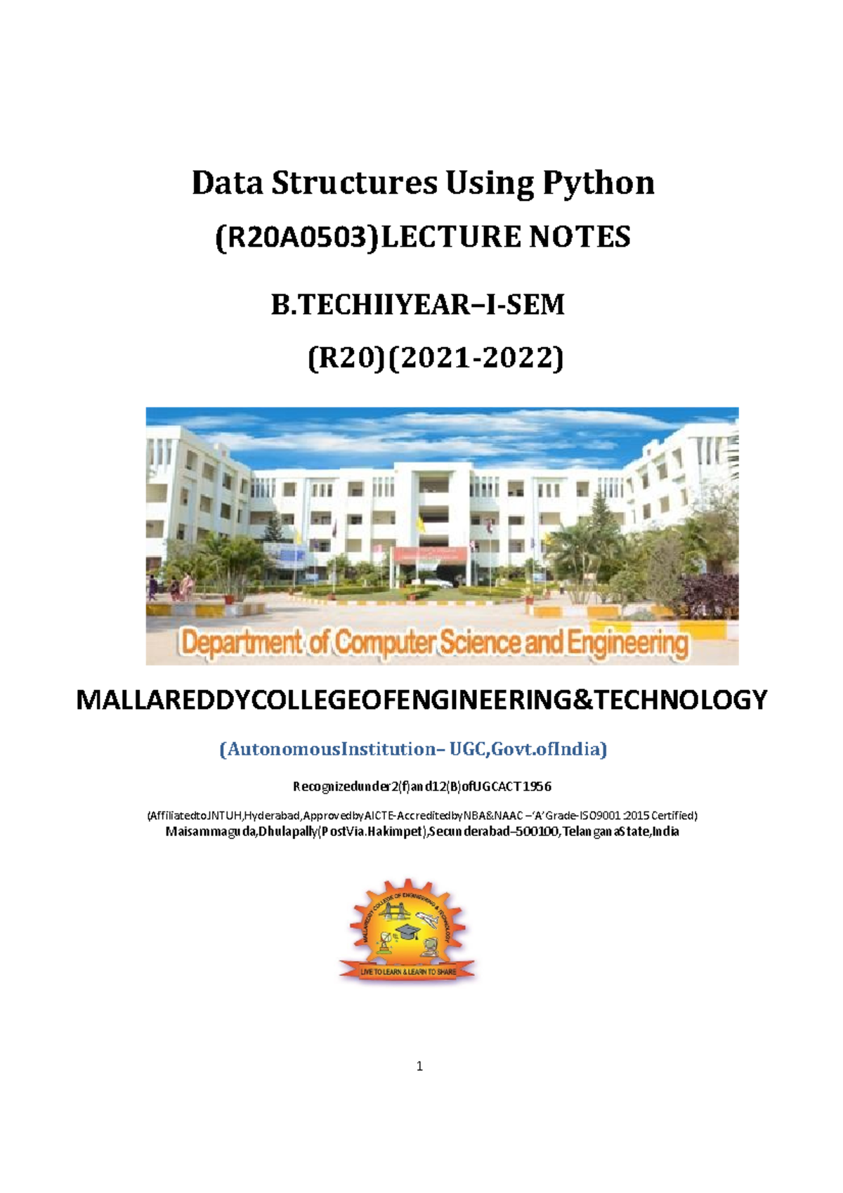 DATA STRUCTURES USING PYTHON (R20A0503) - II Year, I Sem Notes - Studocu