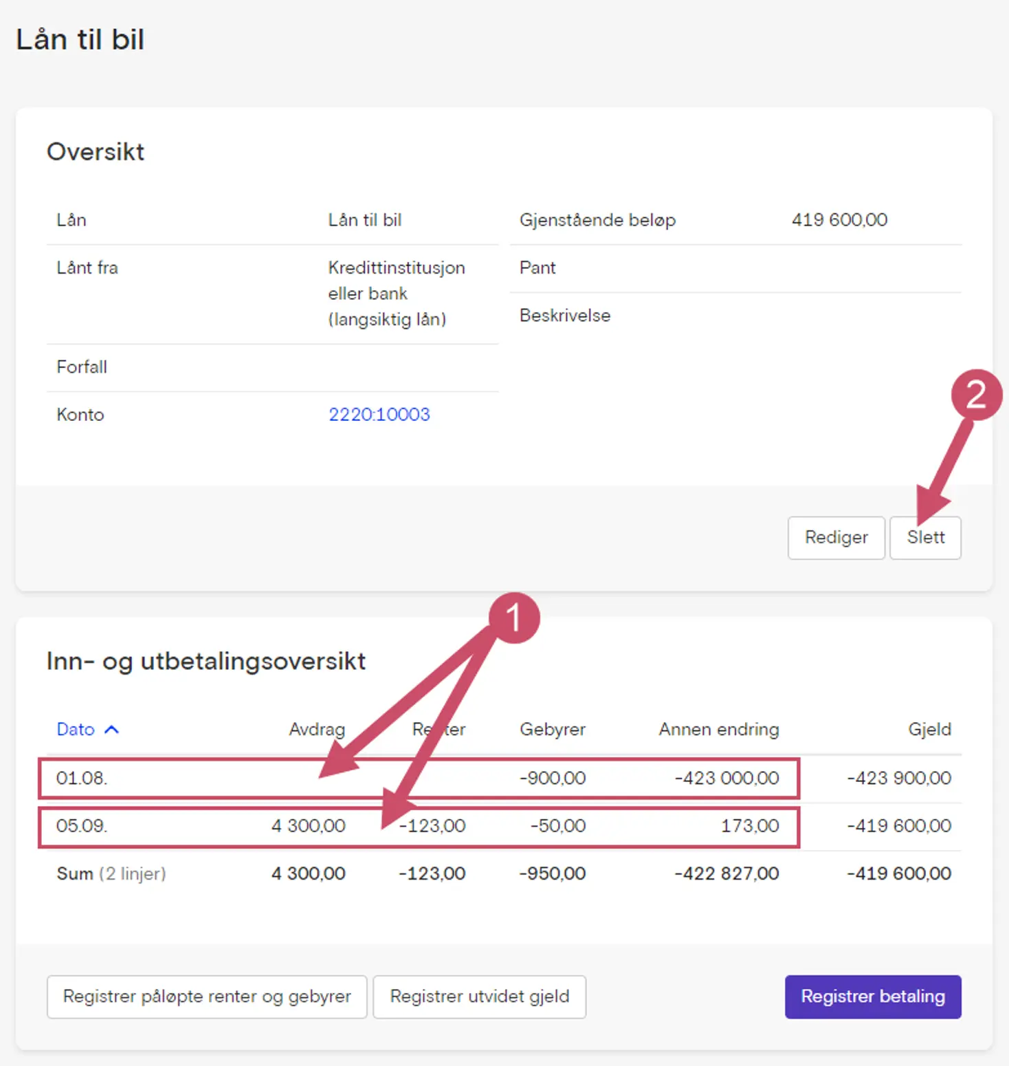Etter du har slettet lånet som var feil kan du registrere lånet på nytt ...