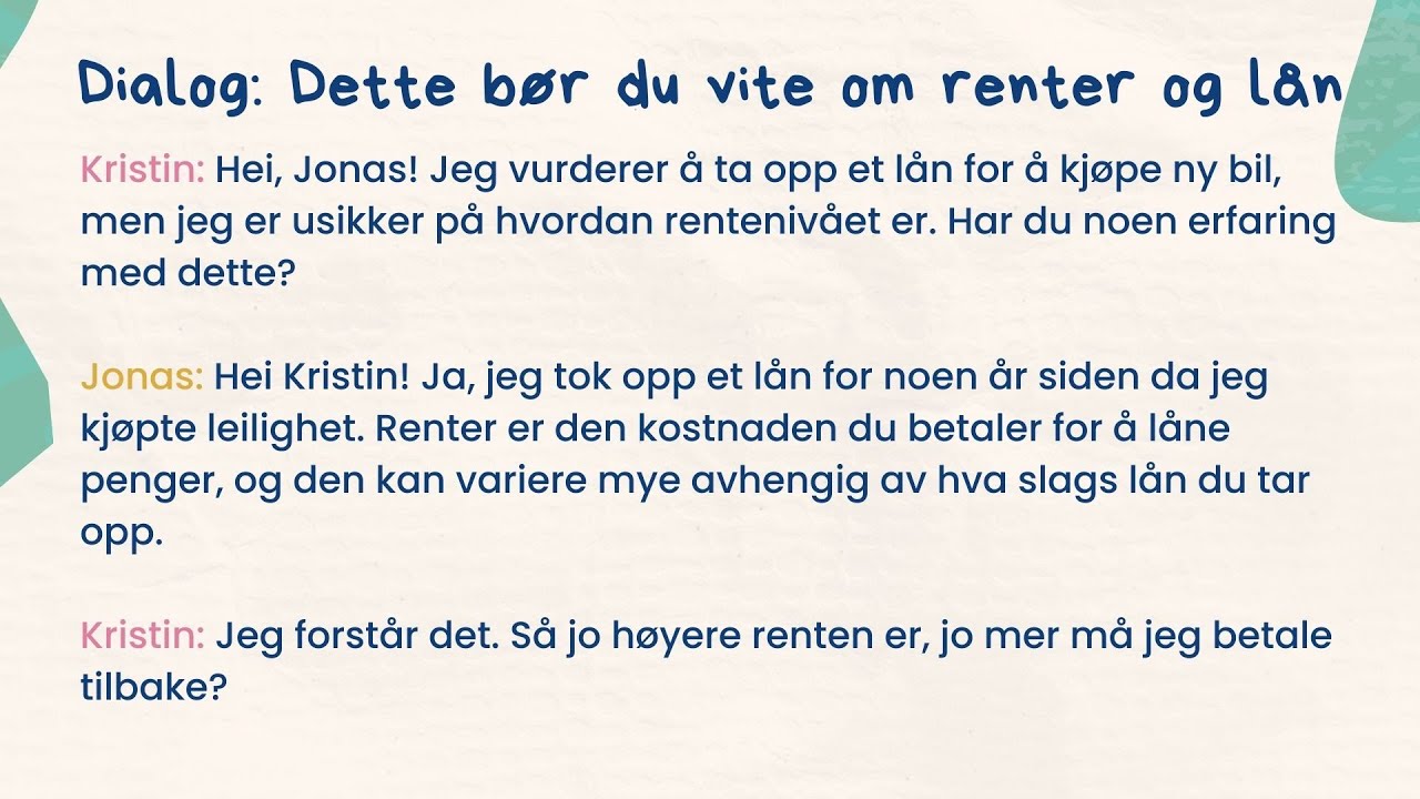 Forberedelse til Norskprøve: Økonomi - Dette bør du vite om renter og ...