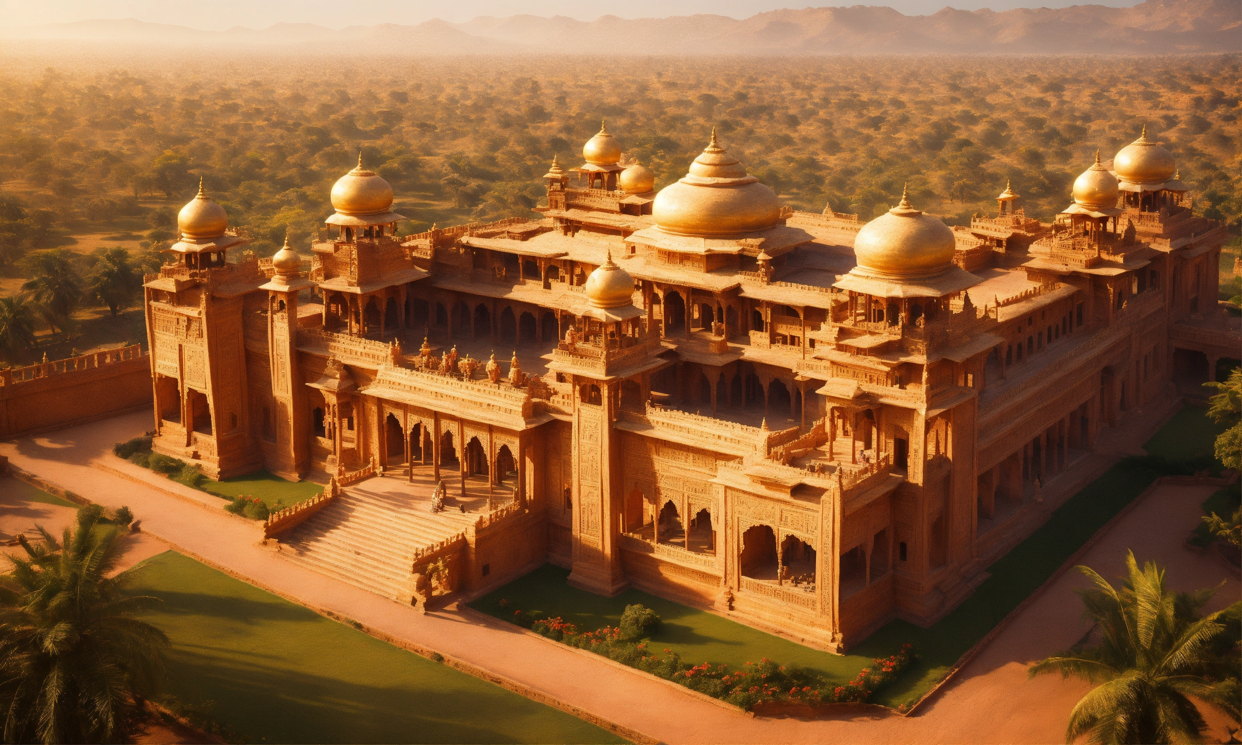 Lexica - A sweeping aerial view captures the opulent Indian palace ...