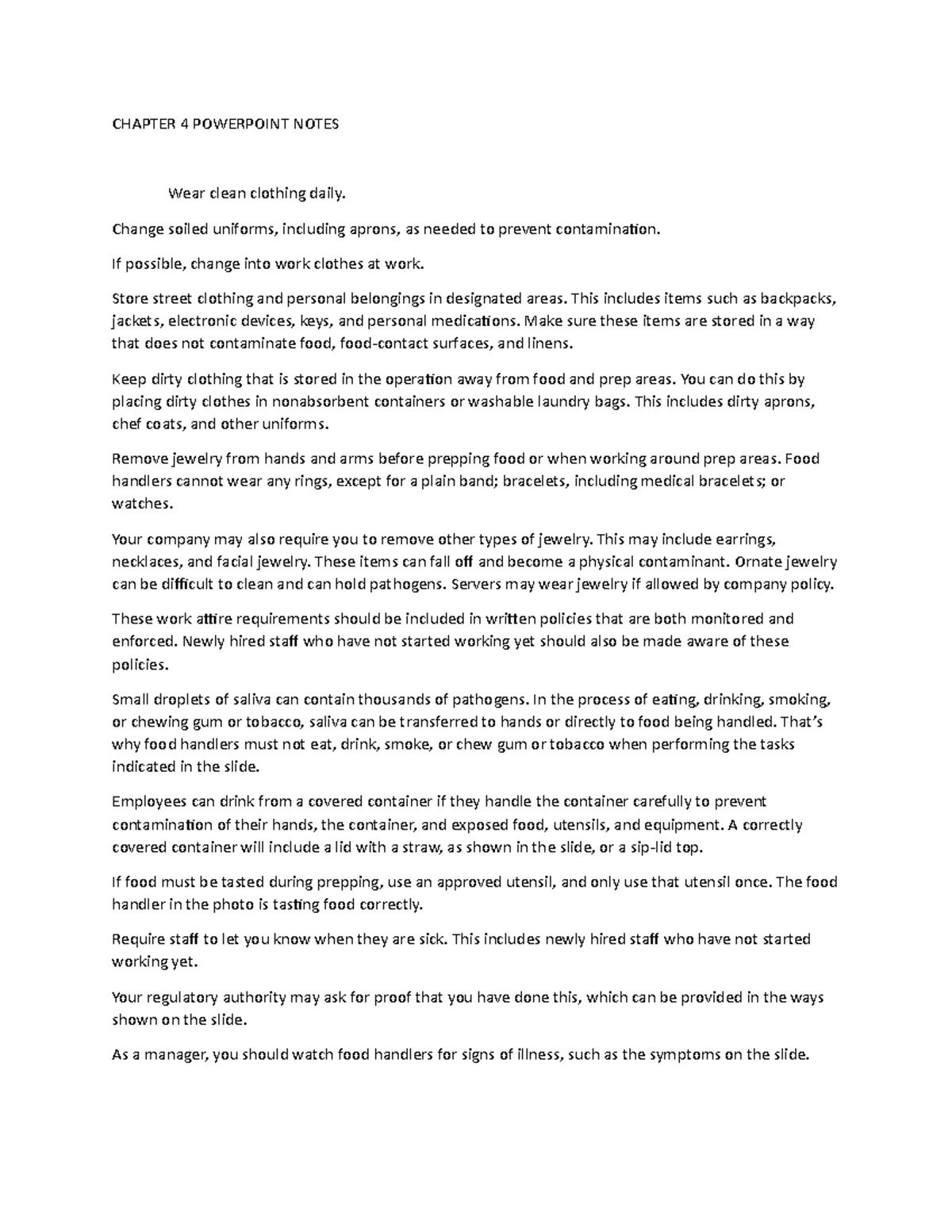 Chapter 4 powerpoint culinary notes 3 - CHAPTER 4 POWERPOINT NOTES Wear ...