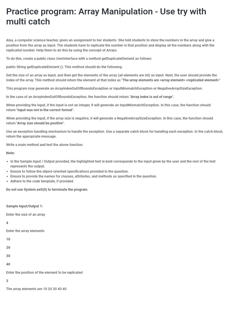 Java Array Manipulation Questions | PDF | Integer (Computer Science ...