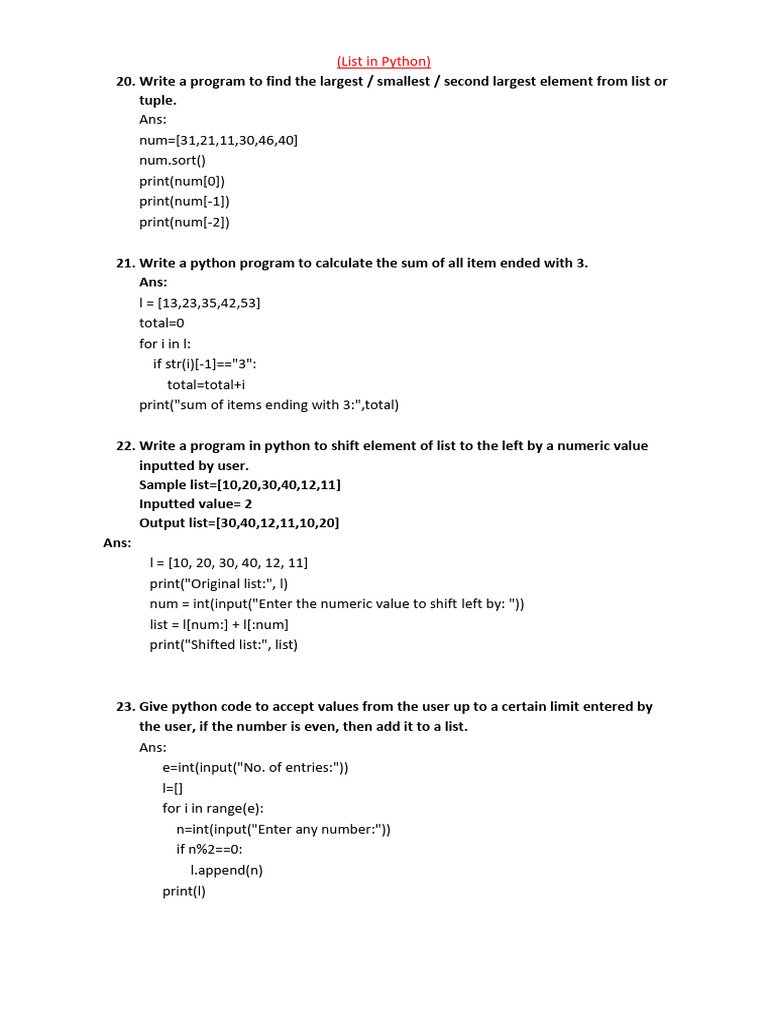 Python List Manipulation Programs | PDF | Computer Programming | Algorithms