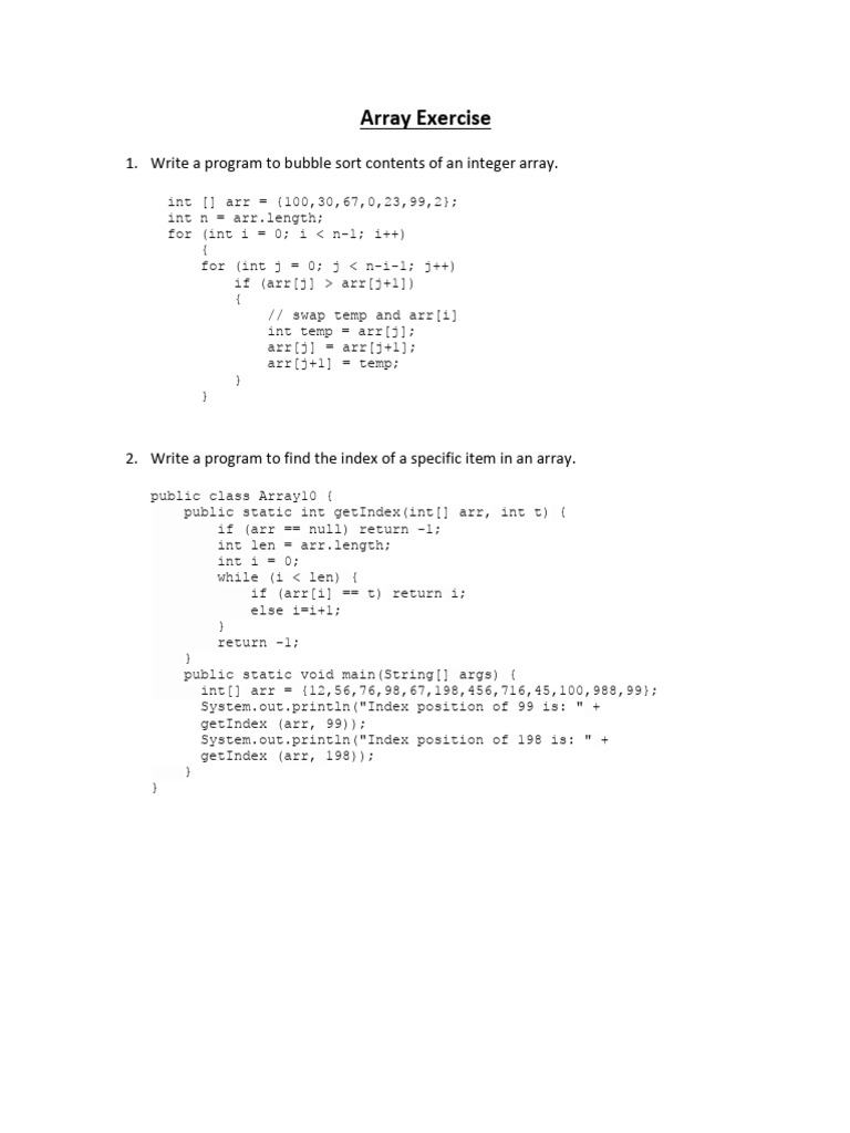 ? Java Array Programs | PDF | Integer (Computer Science) | String ...