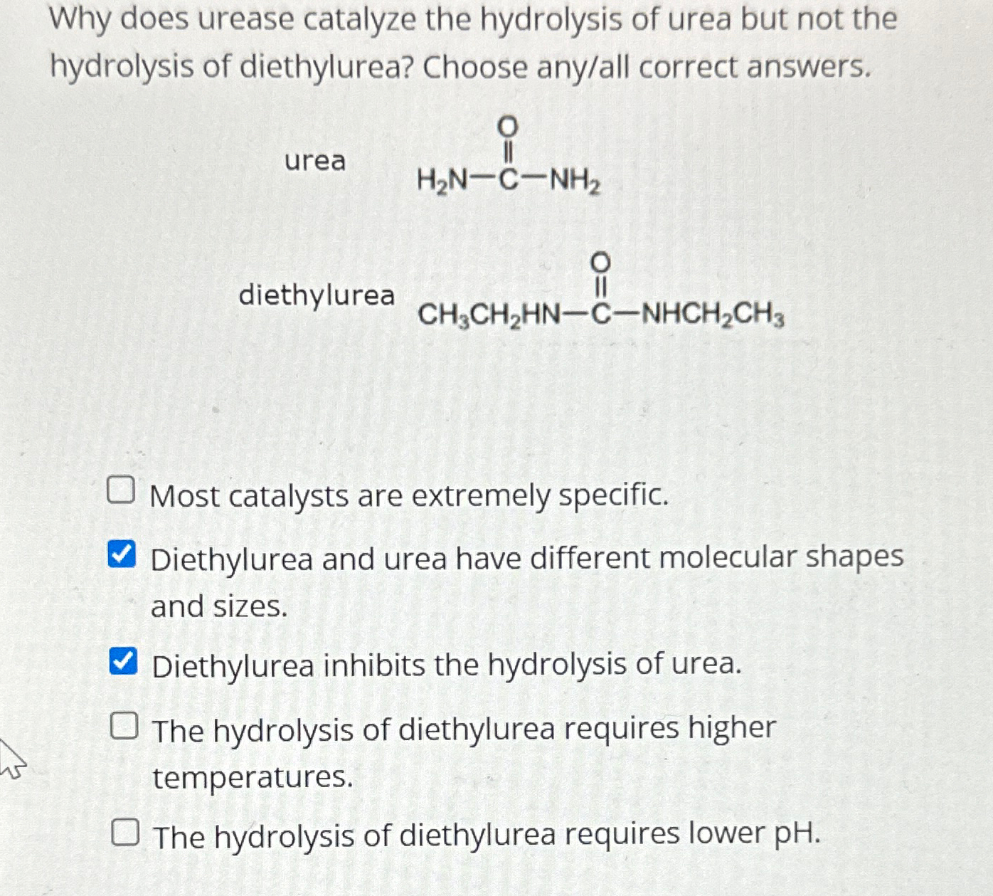 Based on this image's title: “Solved Why does urease catalyze the hydrolysis of urea but | Chegg.com”