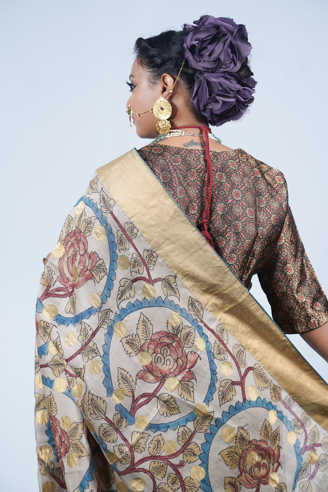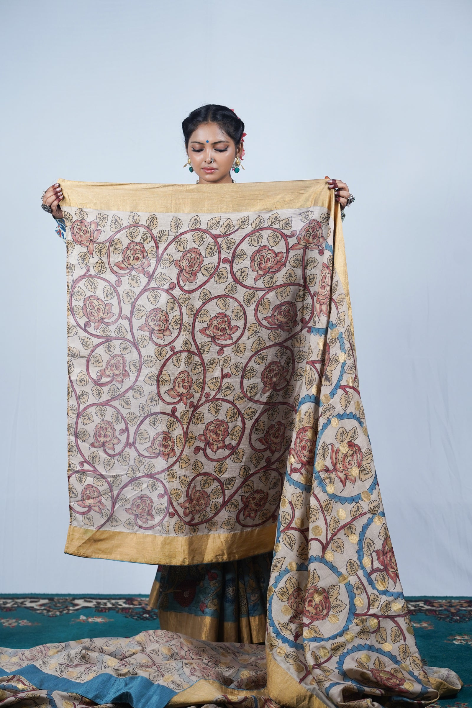 Hawagulab Kalamkari Saree | Handpainted Kalamkari Sarees | Ayush ...