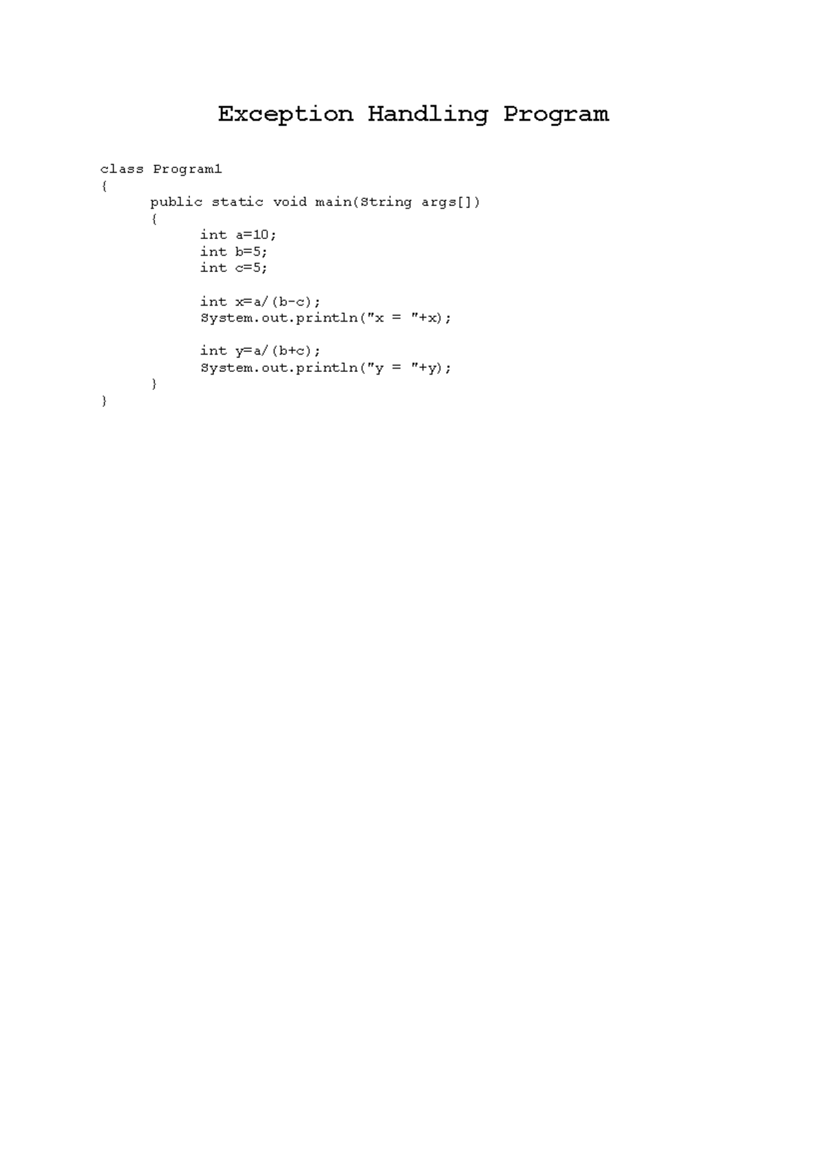 Exception Handling Program: Java Concepts and Exception Classes - Studocu