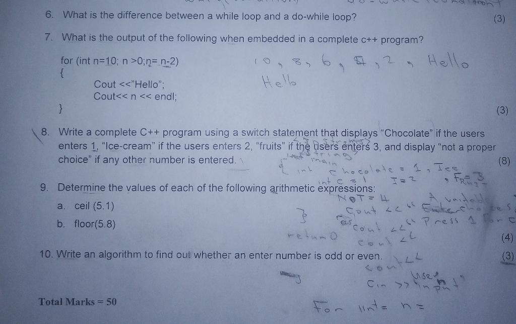 SOLVED: Question a) Distinguish between the while and do-while loops. b ...