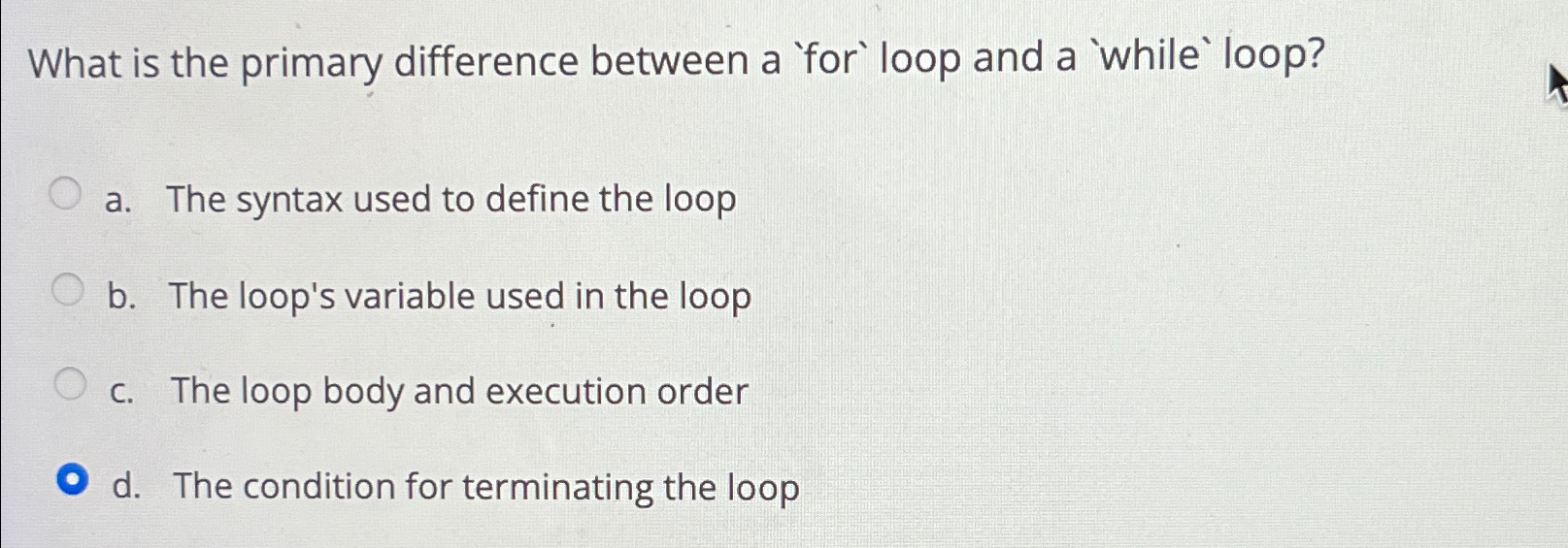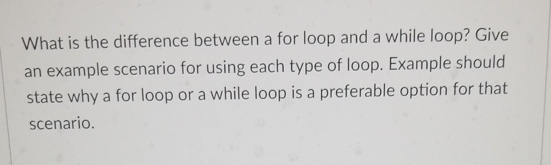 Solved What is the primary difference between a 'for' loop | Chegg.com