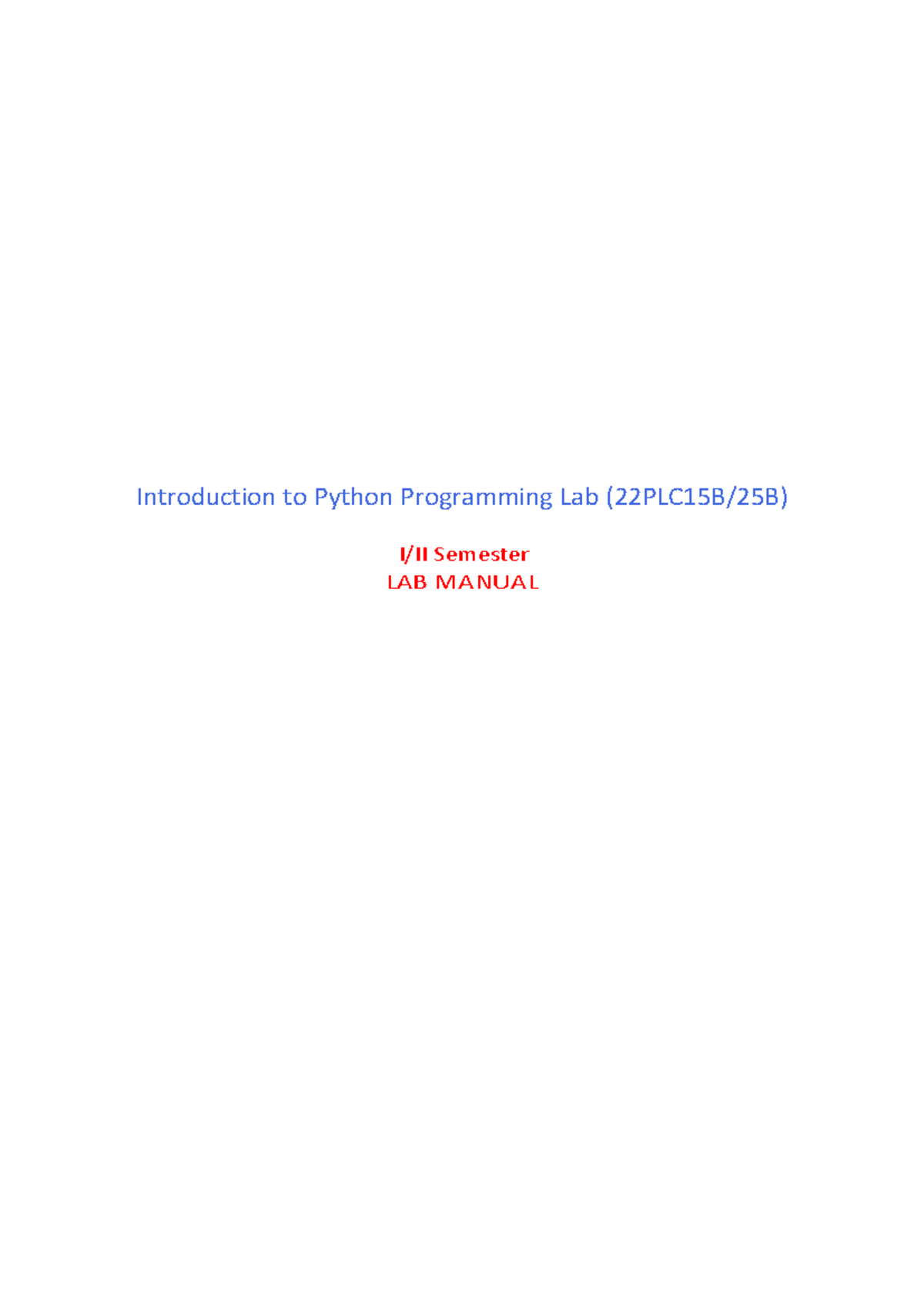 Python lab manual - Introduction to Python Programming Lab (22PLC15B ...