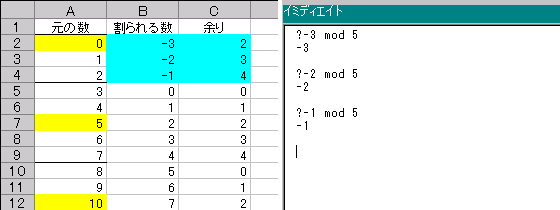 Excel:MOD関数とmod演算子(負の割り算の場合) : 保管庫(Yahoo!ブログより移行)