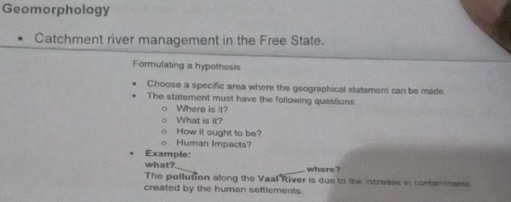 GEOGRAPHY GRADE 12 | GEOMORPHOLOGY | CATCHMENT & RIVER MANAGEMENT ...