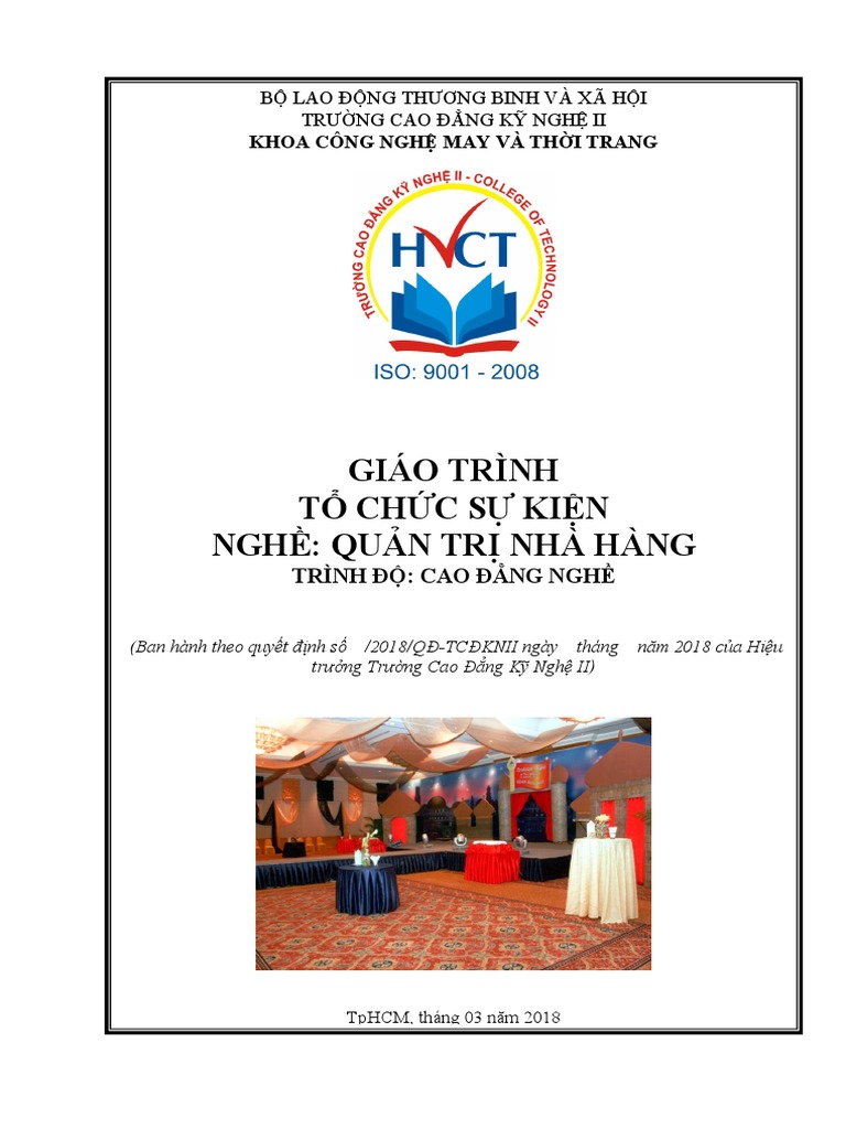 Giáo trình Tổ chức sự kiện - Nghề - Quản trị nhà hàng (Trình độ Cao ...