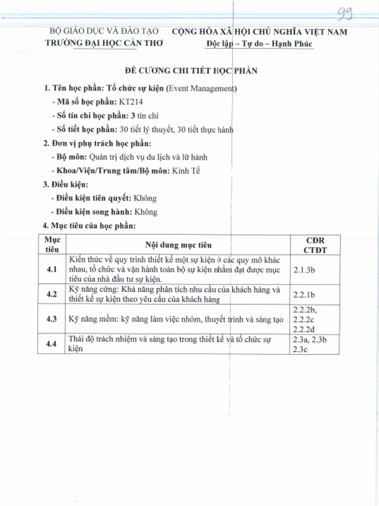 Đề Cương Chi Tiết Học Phần Quản Trị Sự Kiện | PDF