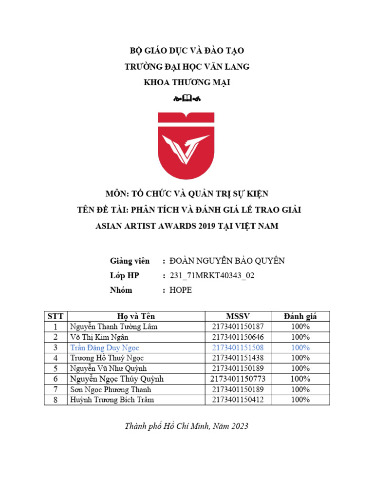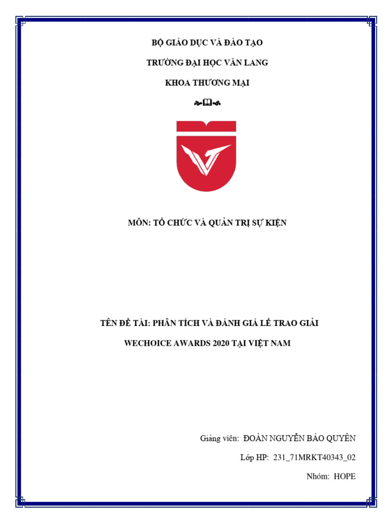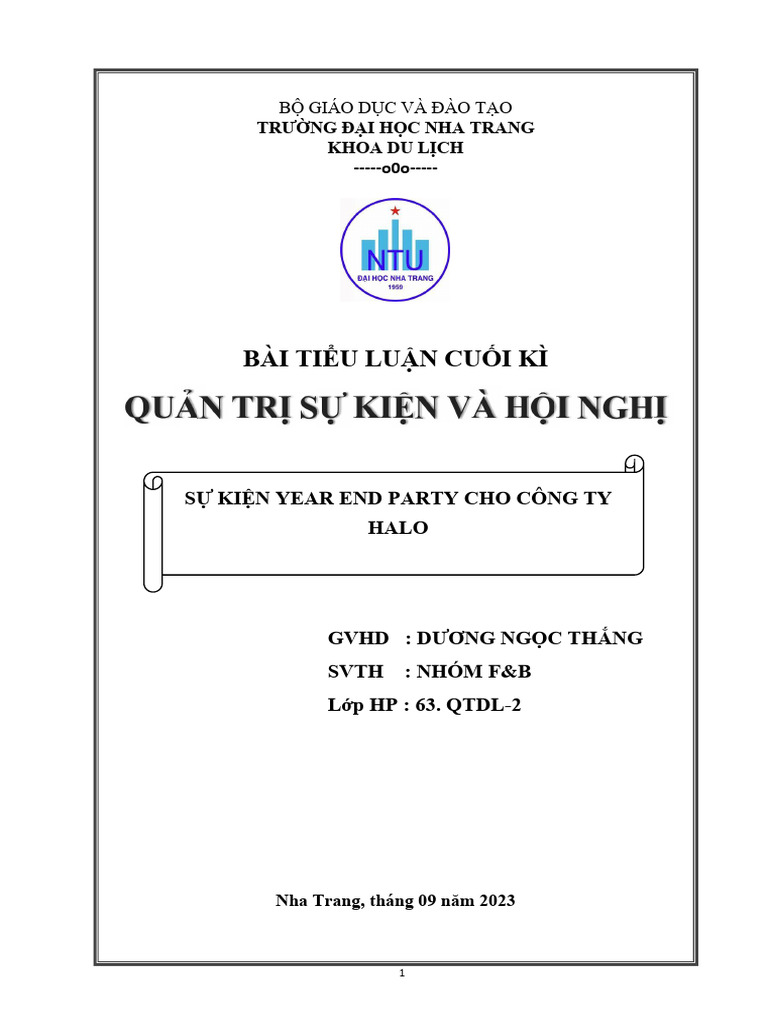 TỔ CHỨC QUẢN TRỊ SỰ KIỆN FILE CUỐI KỲ | PDF