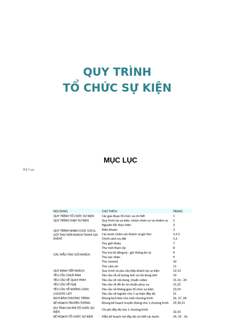 QUY TRÌNH TỔ CHỨC SỰ KIỆN CHUẨN | PDF