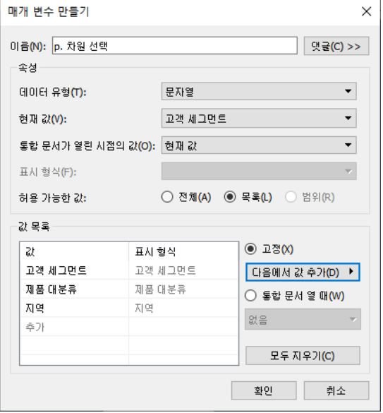 매개 변수 만들기 및 흐름에서 사용 - Tableau