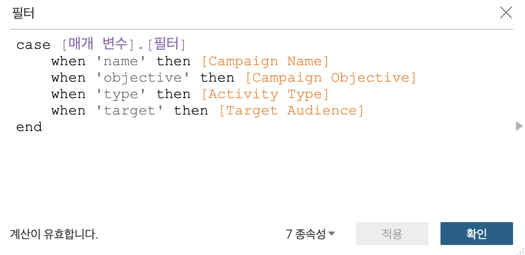 [Tableau] 매개 변수 활용 신규 필터 제작