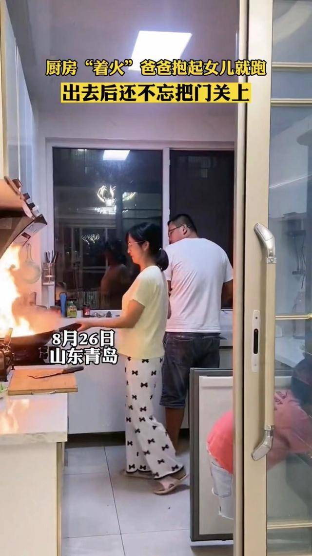 厨房“着火”爸爸抱起女儿就跑,却把妻子关在厨房:这老公不能要_反应_孩子_老婆