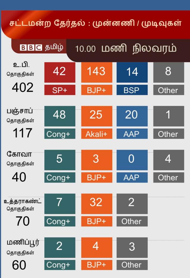 5 மாநில சட்டமன்ற தேர்தல் முன்னணி நிலவரம் - BBC News தமிழ்