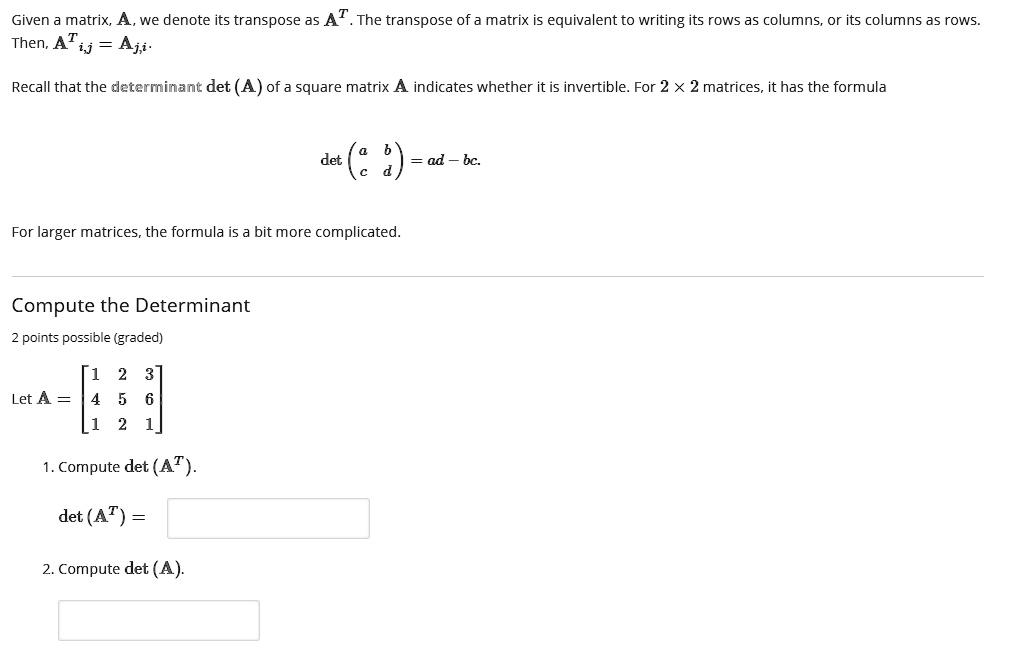 SOLVED: The transpose of matrix A, denoted as A^T, is the matrix ...