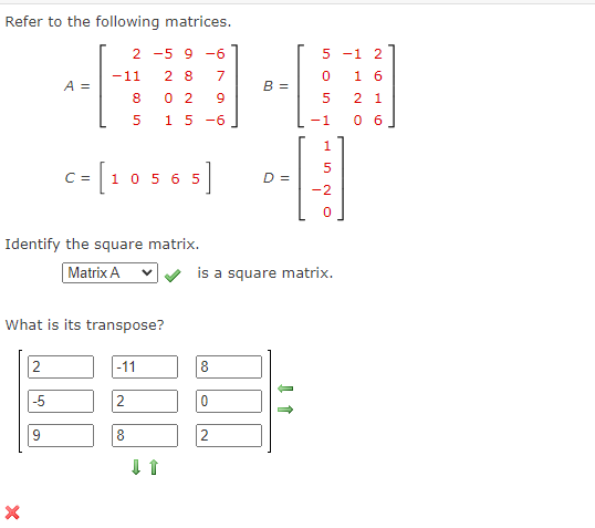 Solved The transpose of a matrix interchanges its rows and | Chegg.com