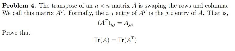 Solved Problem 4. The transpose of an n x n matrix A is | Chegg.com